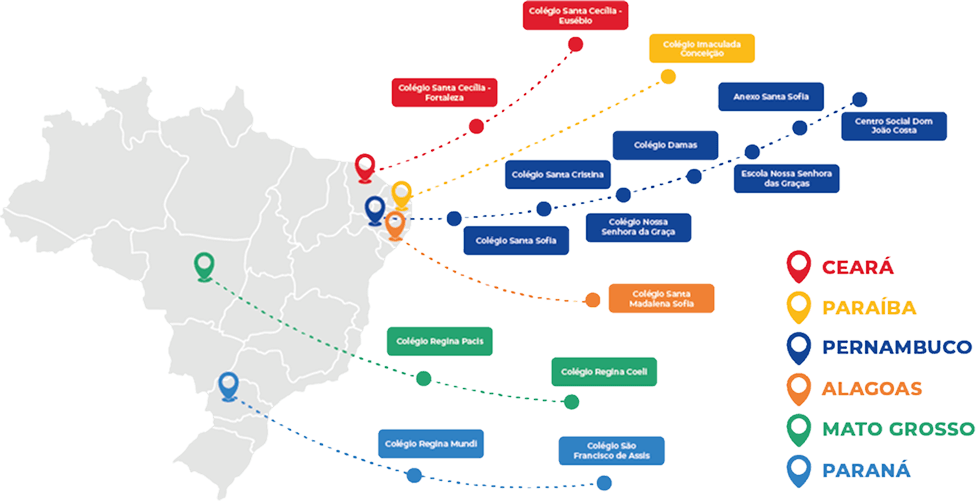 Com 14 escolas no Brasil, abraçamos o propósito de educar para inspirar pessoas e transformar o mundo. Impulsionados pelo Carisma das Religiosas da Instrução Cristã, instituto bicentenário, exercemos com responsabilidade e afeto a missão de formar a pessoa humana com base nos valores cristãos, éticos e acadêmicos, de maneira participativa e comprometida, encarnando a face atual do Cristo Educador para construir uma sociedade sustentável.